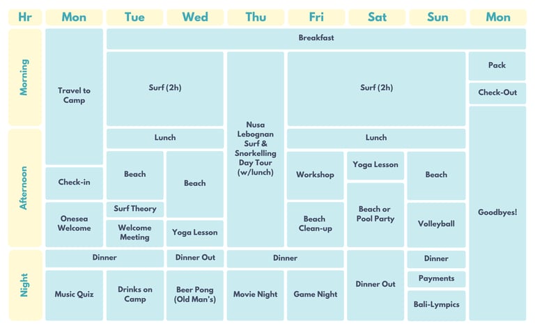 From quiz nights, pool parties, volleyball tournaments, and an epic Bali-lympics, there’s always something happening at camp.