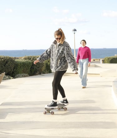 Surfskating is a fun and powerful way to build confidence, balance, and flow on land — skills that translate directly into your surf. Plus, it’s a great way to play and let go of the fear of looking silly. We’ll all be doing it together.